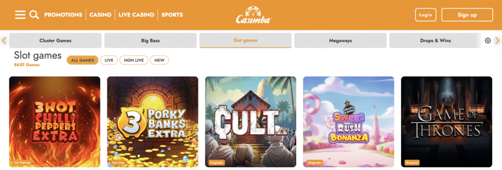 Casimba har over 4 000 spill på sitt nettcasino. Disse er oversiktlig sortert, og i søkefunksjonen kan du finne både spesifikke spill og utviklere. Man kan også lage en egen «favoritter»-liste, som gjør at man alltid har sine yndlingsspill kun et tastetrykk unna.