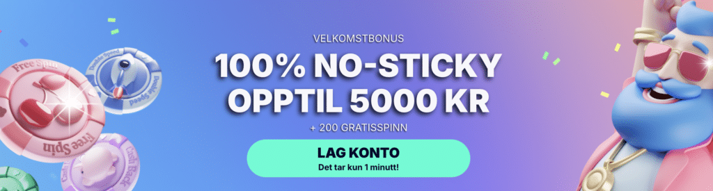 CasinoFriday tilbyr en av de mer interessante bonusmodellene pÄ markedet, nemlig en sÄkalt no sticky bonus. Standardtilbudet for norske spillere er en 100 % bonus opptil 5 000 kroner kombinert med 200 free spins som fordeles over flere dager.